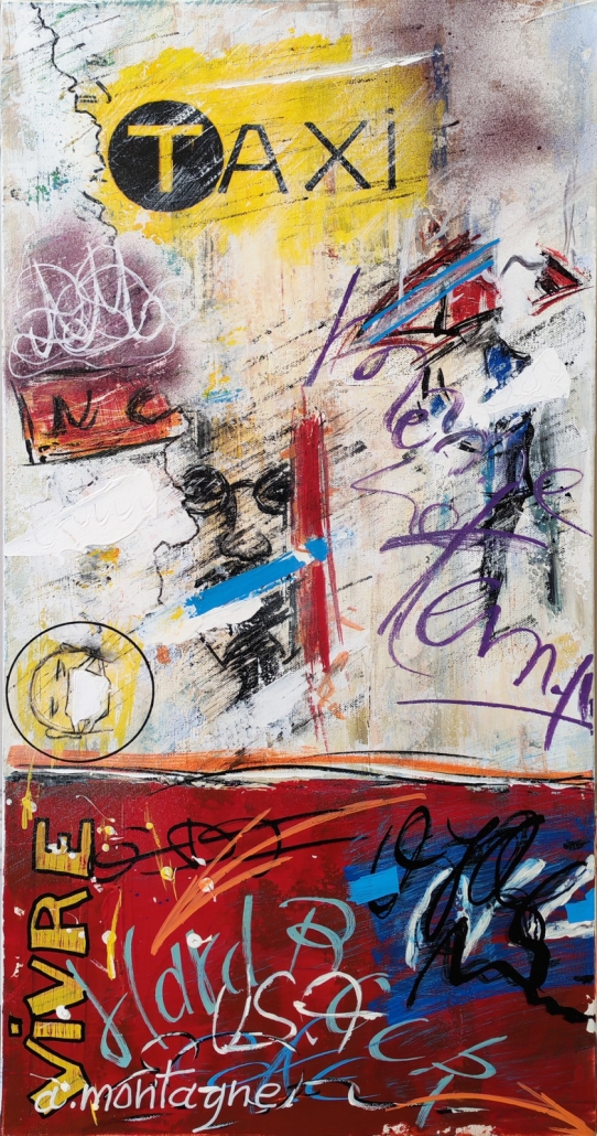 Chez Adrien Montagne, la peinture relève d’une nécessité. Ancien entraîneur de boxe anglaise au plus haut niveau, il a conservé de ce parcours une relation directe au geste, à l’énergie et à l’engagement. Cette intensité traverse aujourd’hui encore ses toiles, où se mêlent tension et lâcher-prise.